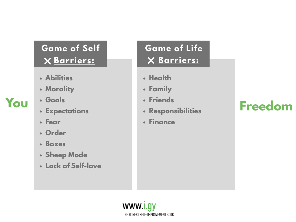 - Game of Life limitations (our health, family and relationships, moral responsibilities to others and financial freedom)