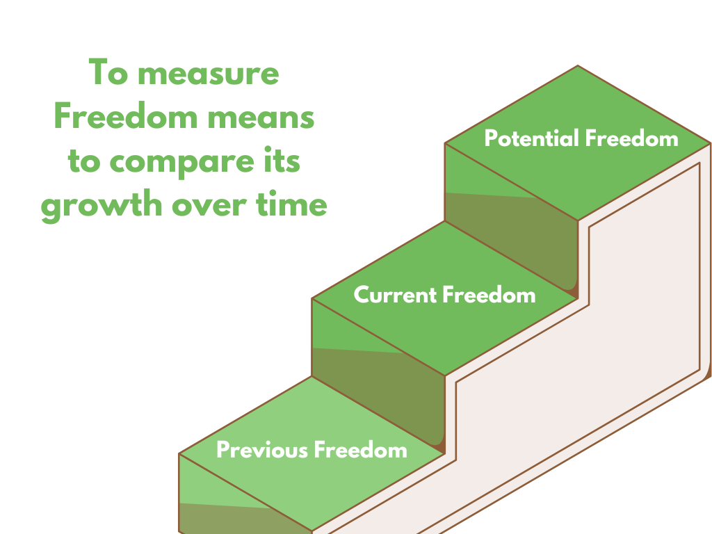 It’s simply the amount of different things you can do. While it may be difficult to count all our choices, we want to feel growth which means just comparing the freedom of me now to the freedom I had as past me and the potential freedom of future me.