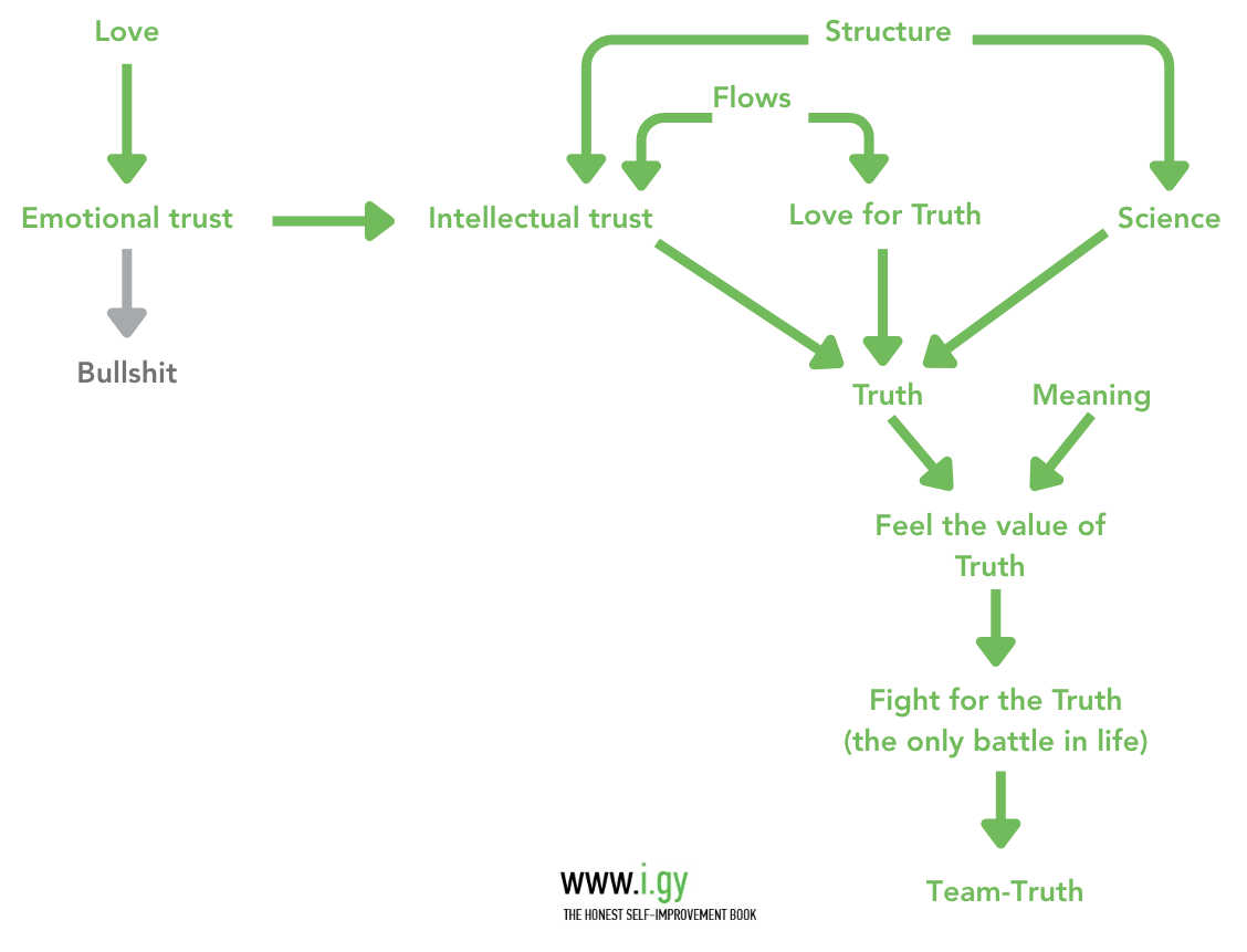 Truth is a Fundamental. Truth leads to Happiness in the Game of Self. Unconditional love and Structure together bring you closer to the Truth. The biggest danger to the Truth is Bullshit. You are not biologically attracted to Truth. You are biologically attracted to Usefulness. The worse the intentions in the Game of Life, the more Truth you need in the Game of Self.
