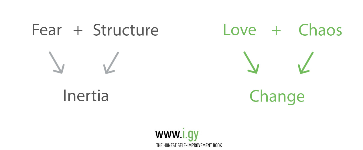 The natural enemies of Inertia are Love and Chaos – the opposite of Fear and Structure!