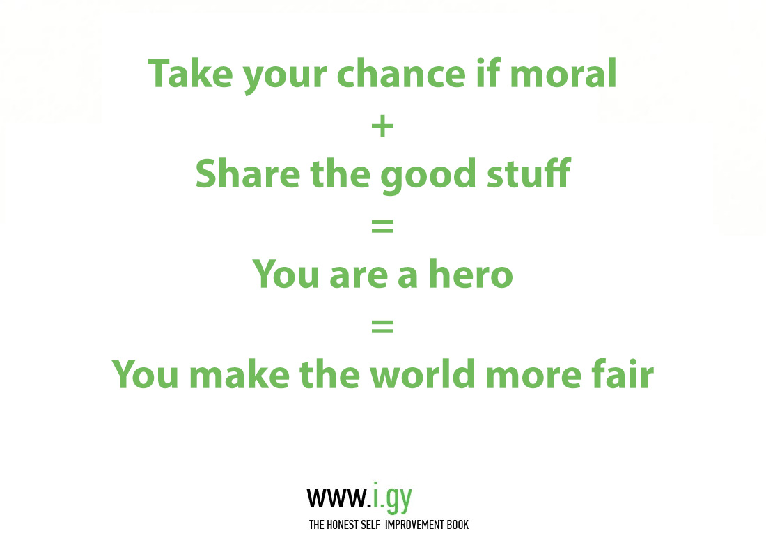 If you want the world to be more fair (which it needs to be), just share most or all of the good stuff. And you’re a hero.