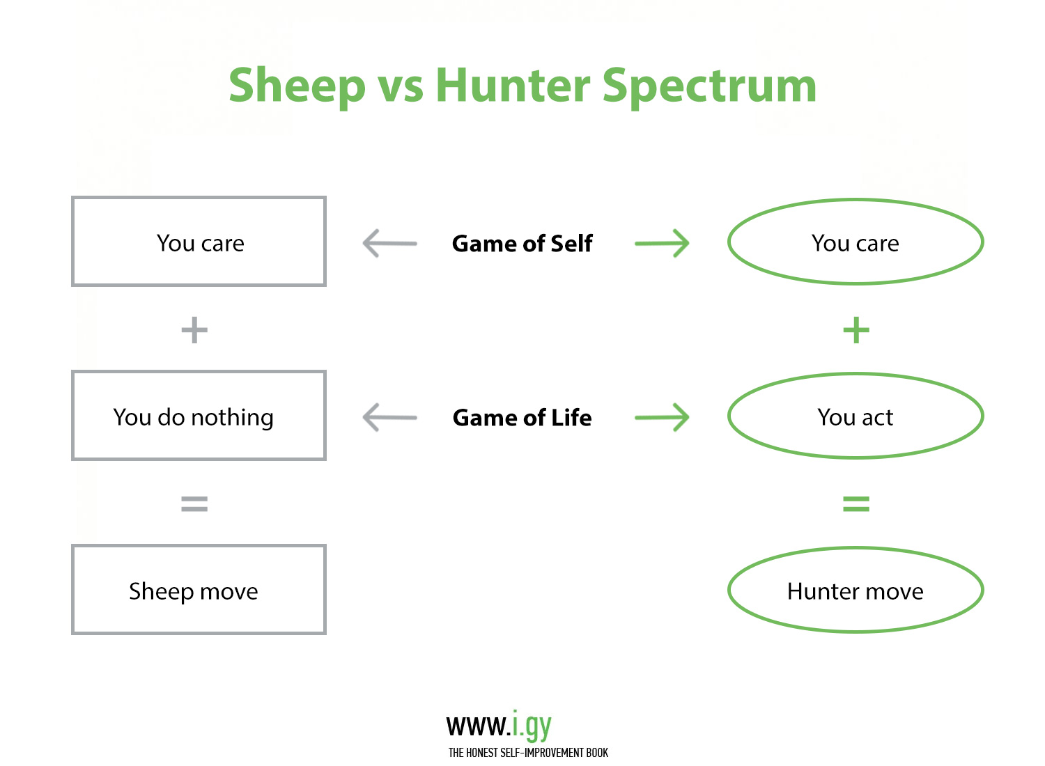 If left to yourself, you’ll likely be stuck in the Sheep cycle and won’t ever use the amount of fucks productively for real Change, instead you’ll be stuck with a serious Game of Self problem.