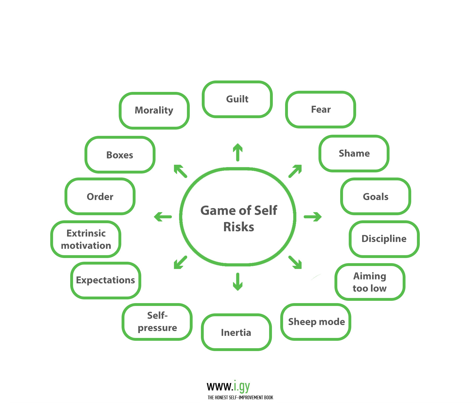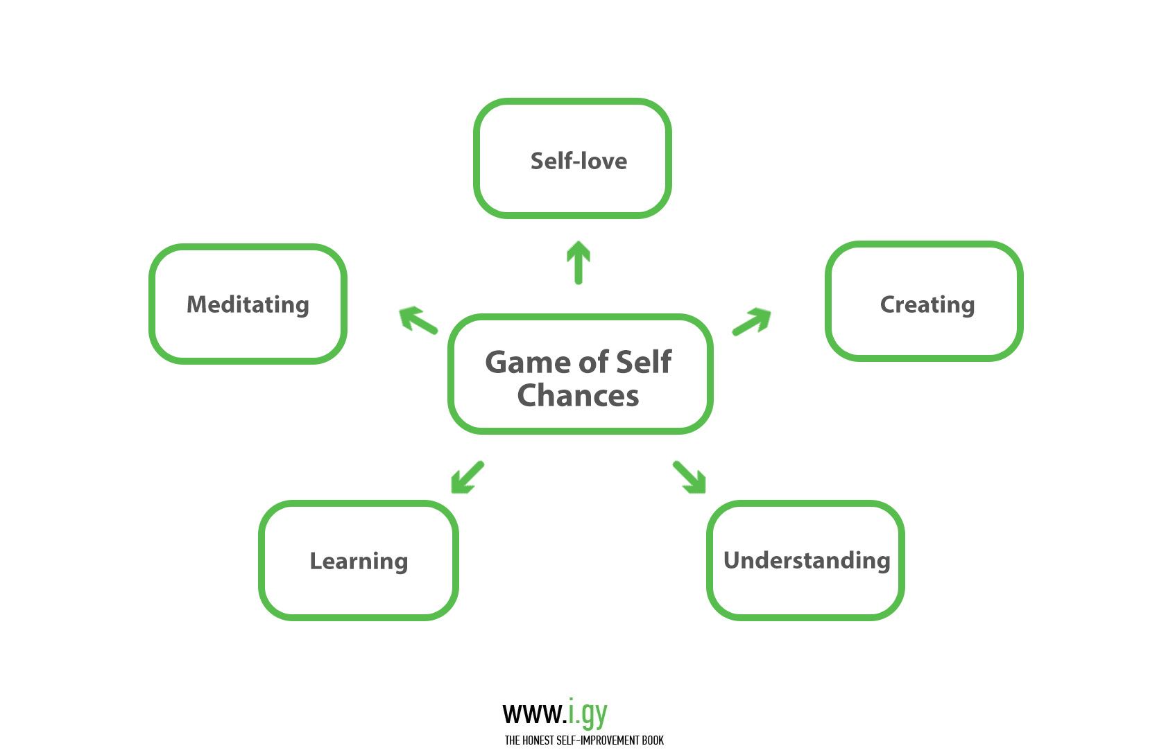Remember, you kind of suck at this! At I Grow Younger, we believe it’s better to focus on the good in The Game of Self. This way, destructive thoughts and feelings will run out of space and resources in your head and fade away. This is valid for most people most of the time, and may not be the right strategy in cases where trauma is affecting your life.