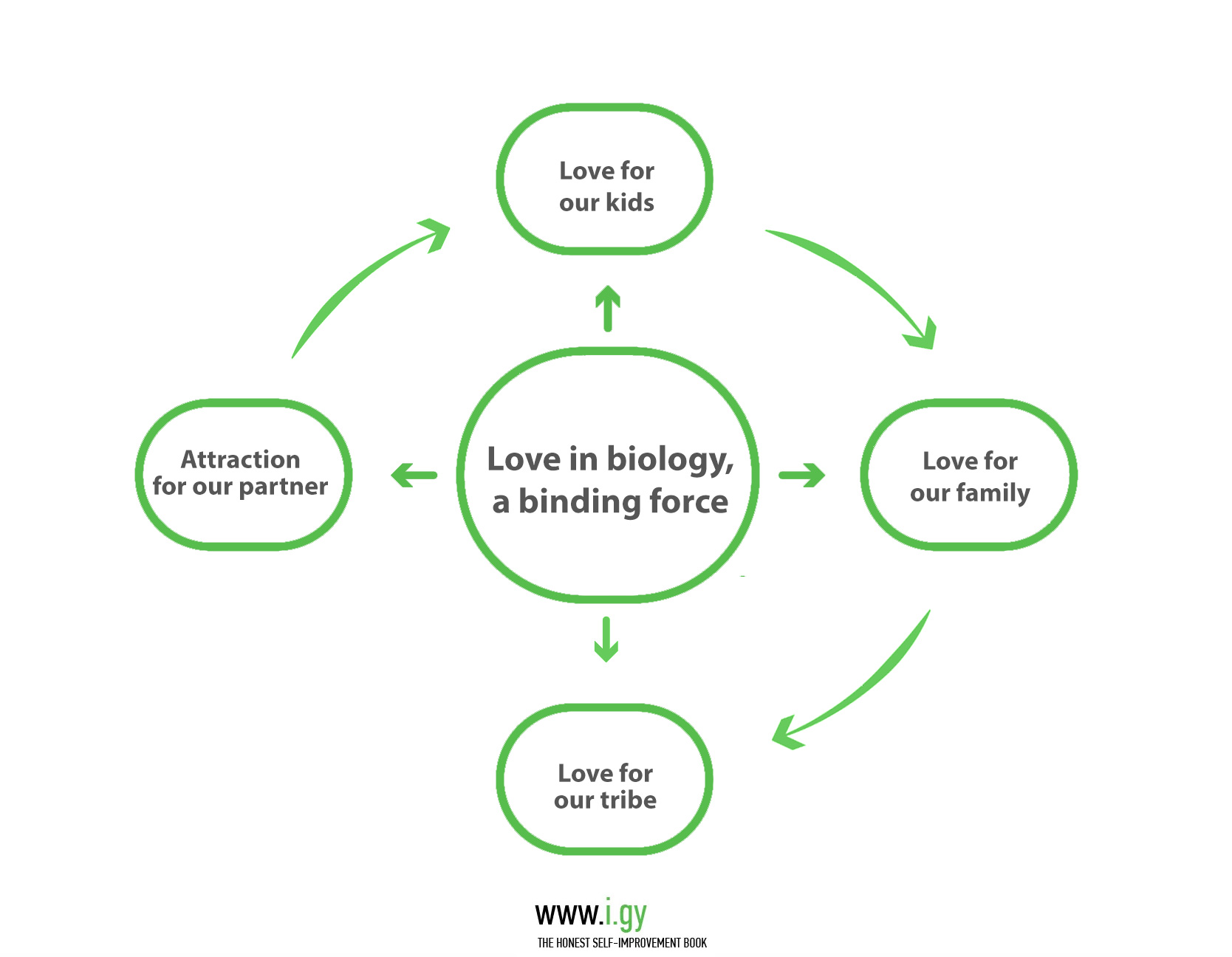 Love in biology for our closest people (our tribe). Again bonding so we better cope with danger.