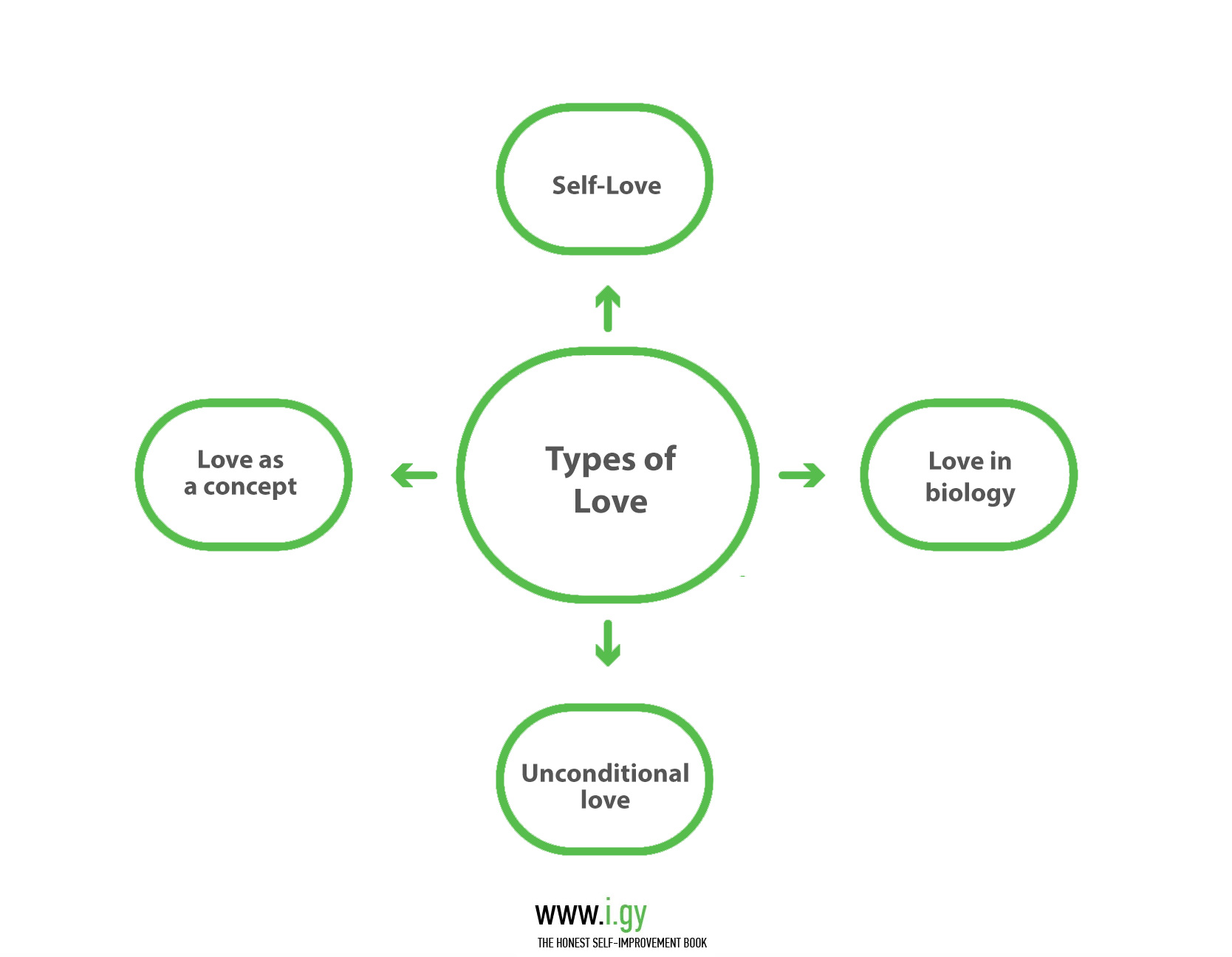 There are four types of love: Self-love, Love as a concept, Love in biology and Unconditional love.