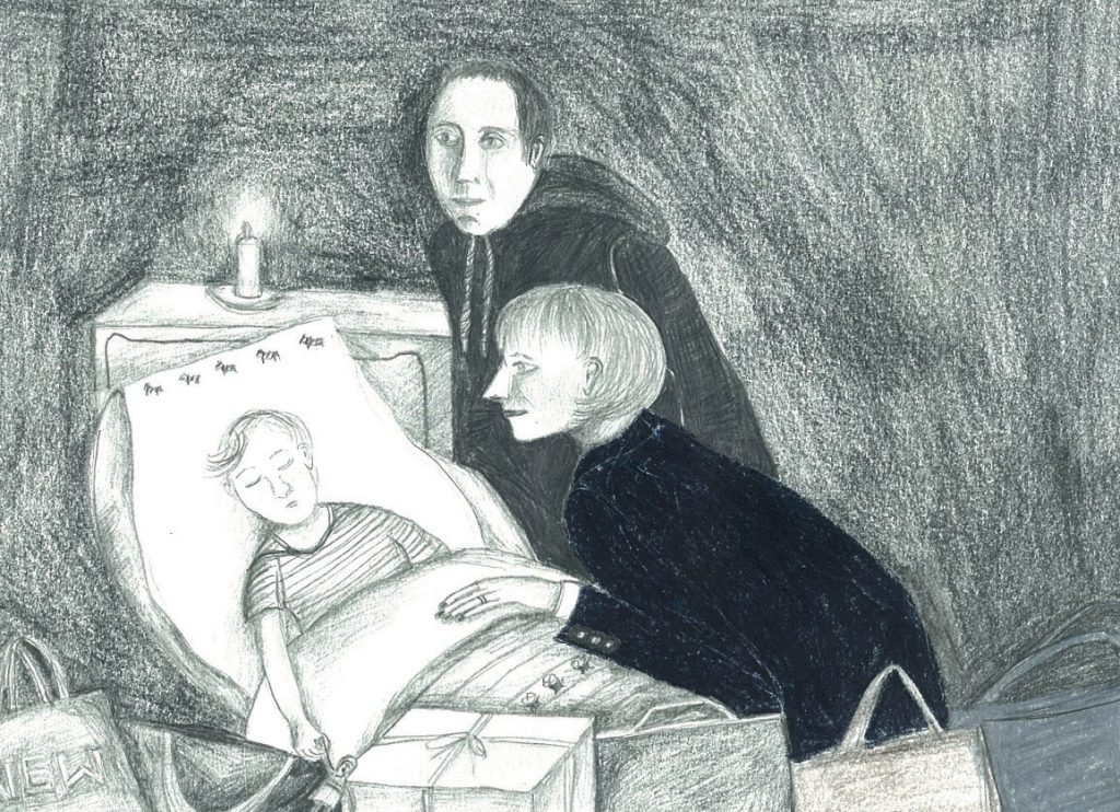 In this case, the smaller boxes like the phone lead to bigger ones like a lousy job or unfulfilling relationship, which gradually merge, leading to broken or missing human connections and a lack of meaning.11 In the end, left with no flows, the boxes score the ultimate victory by uniting into this Wall of Mirrors.