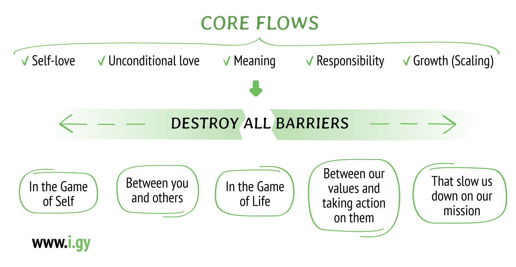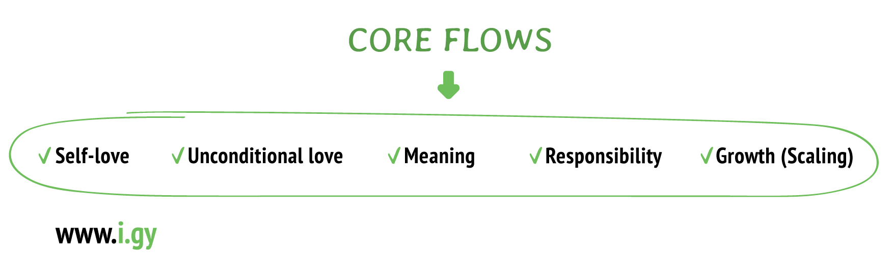 Intrinsic motivation is simply the sum of your Core Flows (Self-Love, Unconditional love, Meaning, Responsibility and Growth).