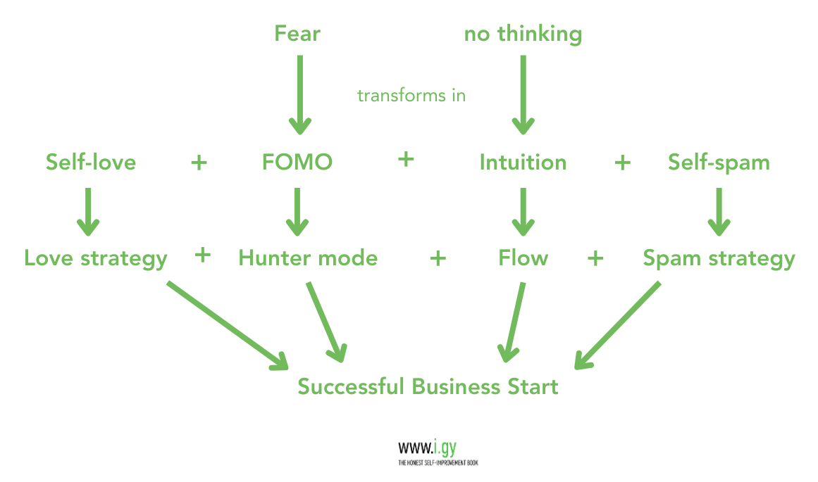 The spark is The Love strategy, which aligns your Game of Self with the business. The fuel is The Spam strategy, which aligns your Game of Life with the business. Your journey to money and high freedom has begun. By starting optimally, you’re halfway there.
